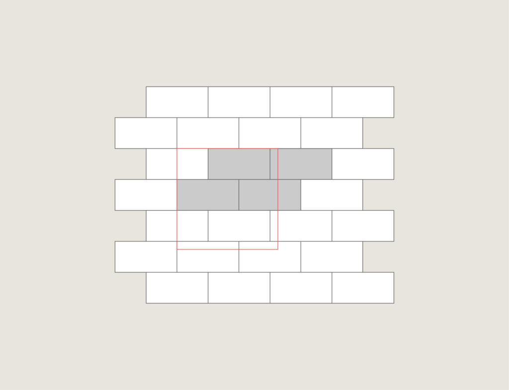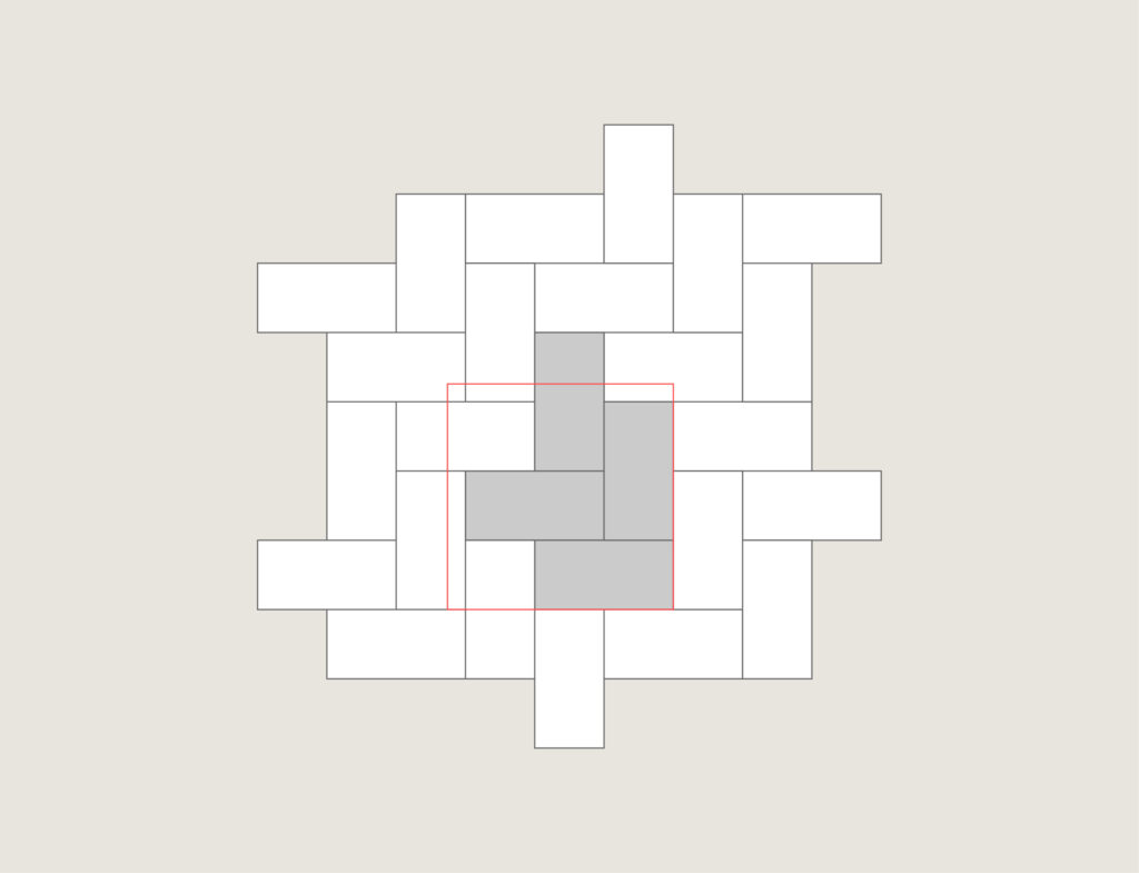 Na ovaj način razbijamo šaru spojeva i širimo prostor. Sa ovim šablonom vezivanja već sada možemo postići znatno bolju nosivost – koristimo ga na terasama, putevima, dvorištima i prilazima!